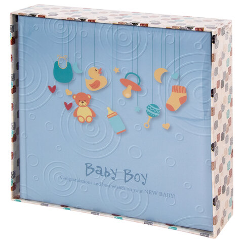 Фотоальбом BRAUBERG "Baby Boy" на 200 фото 10х15 см, твердая обложка, бумажная страница, бокс, голубой, 391144