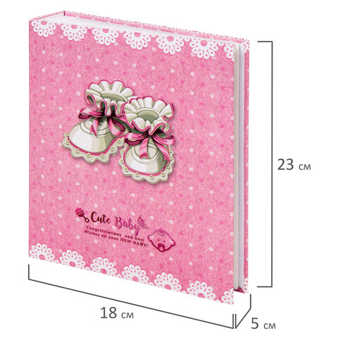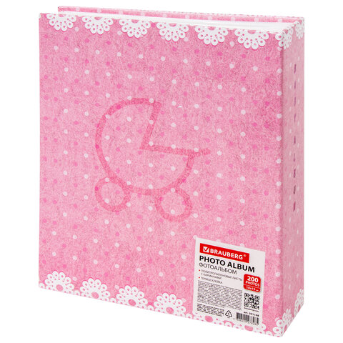 Фотоальбом BRAUBERG "Baby shoes" на 200 фото 10х15 см, твердая обложка, термосклейка, розовый, 39114, 391148