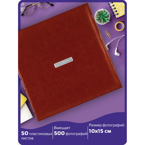 Фотоальбом BRAUBERG "Delta" на 500 фото 10х15 см, под гладкую кожу, коричневый, 391182