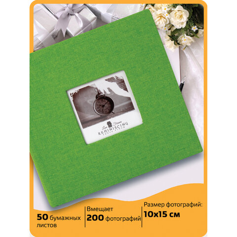 Фотоальбом BRAUBERG "Лайм" на 200 фото 10х15 см, ткань, зеленый, 391189