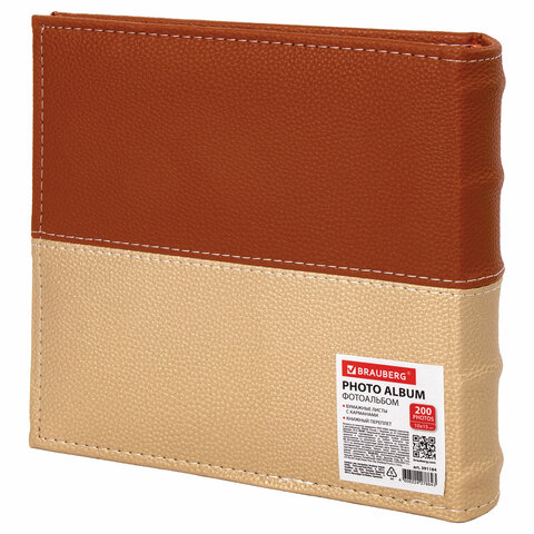 Фотоальбом BRAUBERG "Mirror" на 200 фото 10х15 см, под кожу, бумажные страницы, бокс, 391184