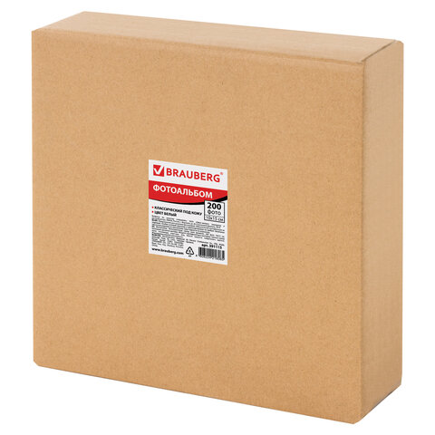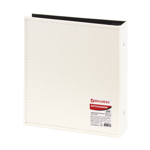 Фотоальбом BRAUBERG на 200 фото 10х15 см, под гладкую кожу, индивидуальный бокс, белый, 391115