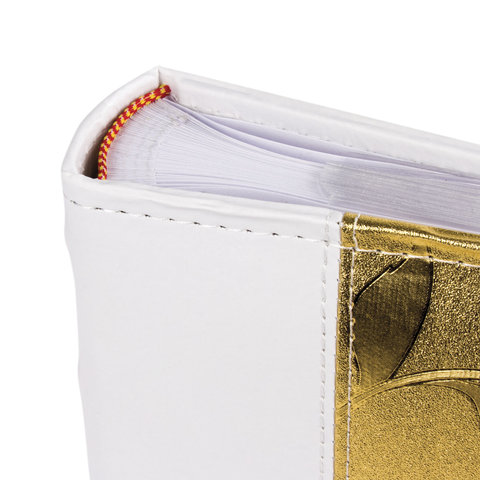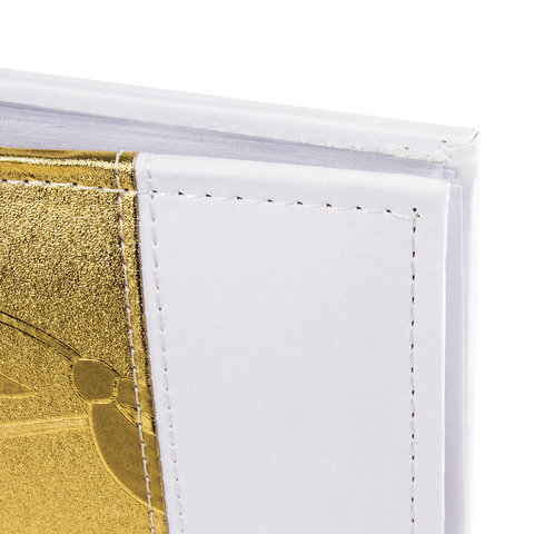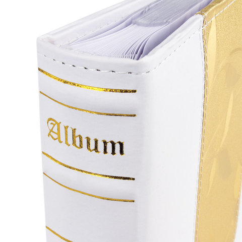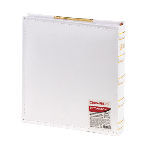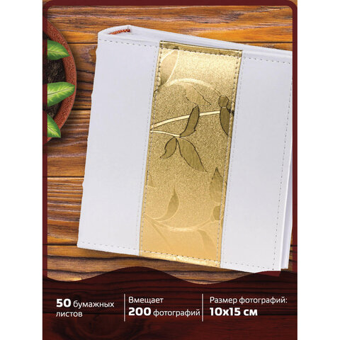 Фотоальбом BRAUBERG на 200 фото 10х15 см, под кожу, бумажные страницы, бокс, бело-золотистый, 391112