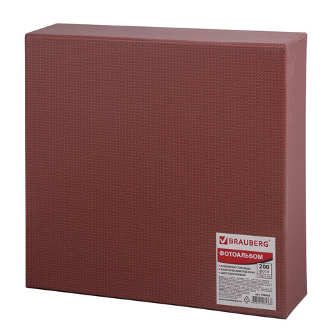 Фотоальбом BRAUBERG на 200 фото 10х15 см, под кожу (комбинированную), бумажные страницы, бокс, коричневый, 390483