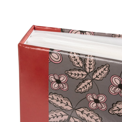 Фотоальбом BRAUBERG на 200 фото 10х15 см, твердая обложка, "Флора", серый с красным, 391121
