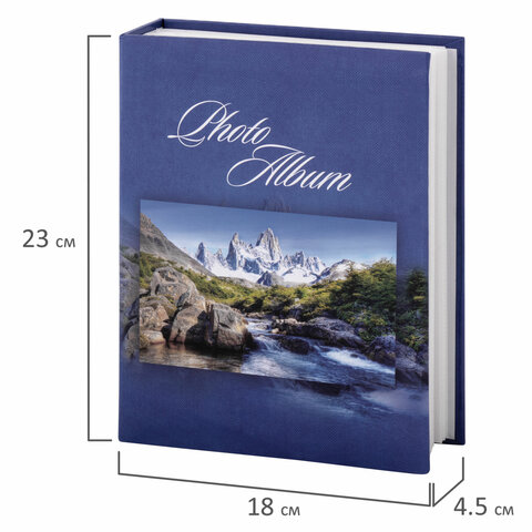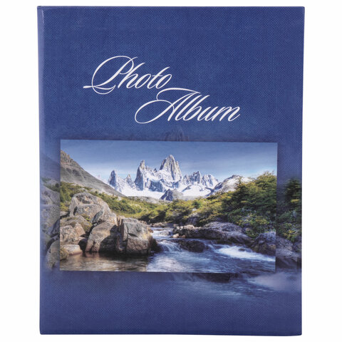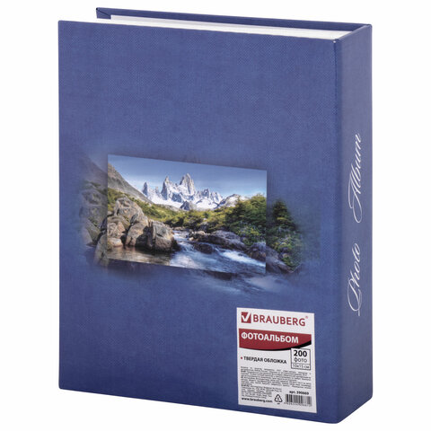 Фотоальбом BRAUBERG на 200 фотографий 10х15 см, твердая обложка, "Горный пейзаж", синий, 390669