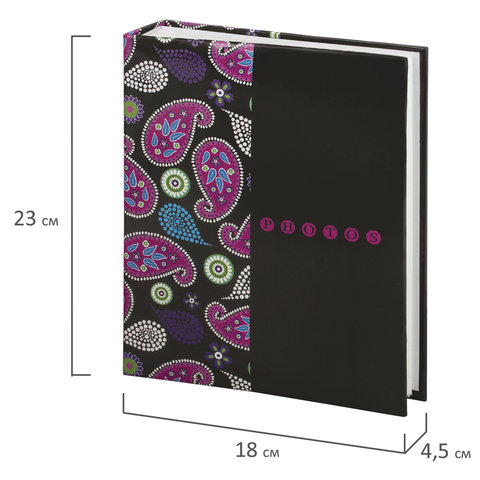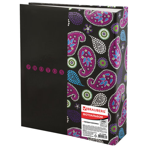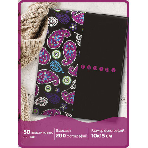 Фотоальбом BRAUBERG на 200 фотографий 10х15 см, твердая обложка, "Пейсли", черный с розовым, 390668