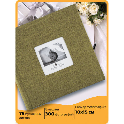 Фотоальбом BRAUBERG на 300 фото 10х15 см, ткань, хаки, 391188