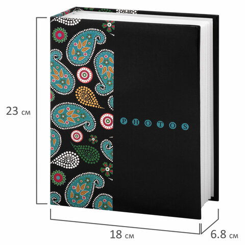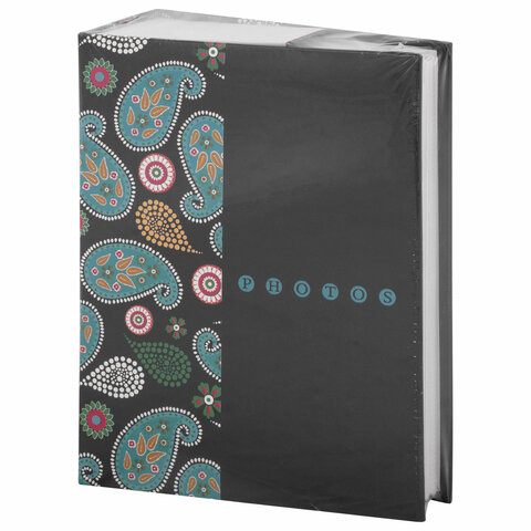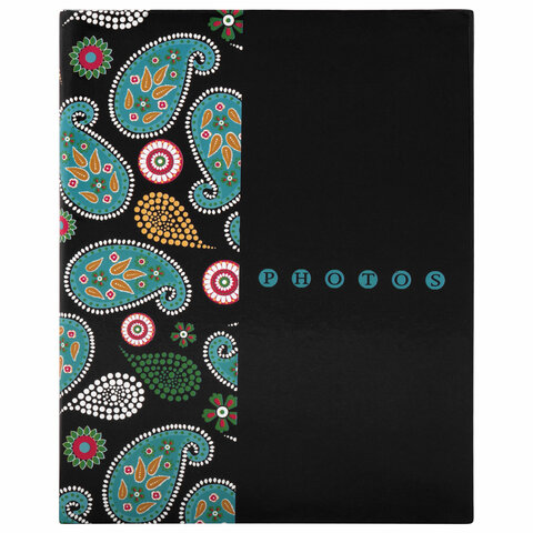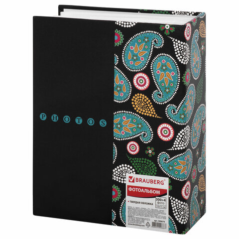 Фотоальбом BRAUBERG на 304 фотографии 10х15 см, твердая обложка, "Пейсли", черный с бирюзовым, 390674