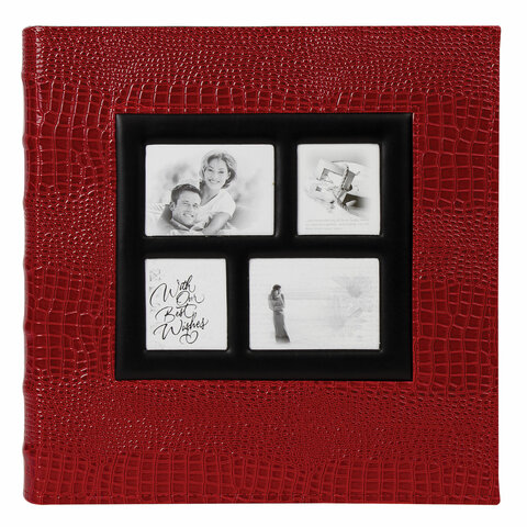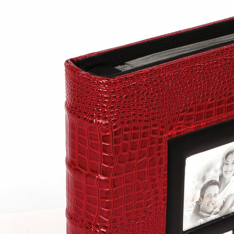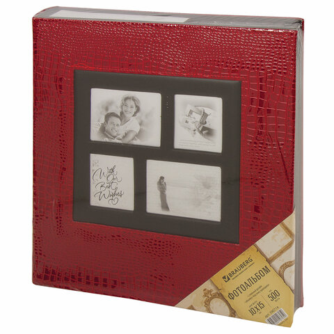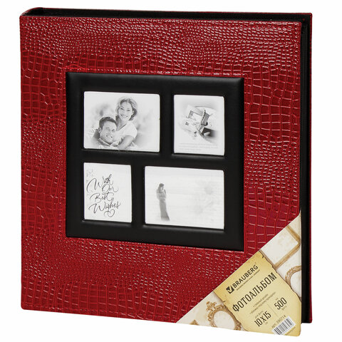 Фотоальбом BRAUBERG на 500 фотографий 10х15 см, обложка под кожу крокодила, рамка для фото, красный, 390714