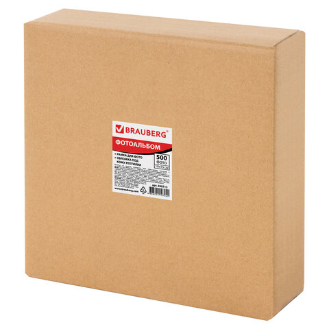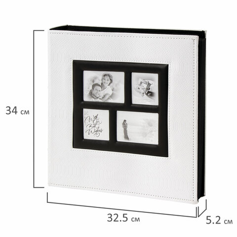 Фотоальбом BRAUBERG на 500 фотографий 10х15 см, обложка под кожу рептилии, рамка для фото, белый, 390713