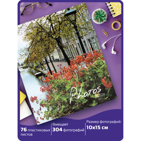 Фотоальбом BRAUBERG "Променад" на 304 фото 10х15 м, твердая обложка, термосклейка, 391168