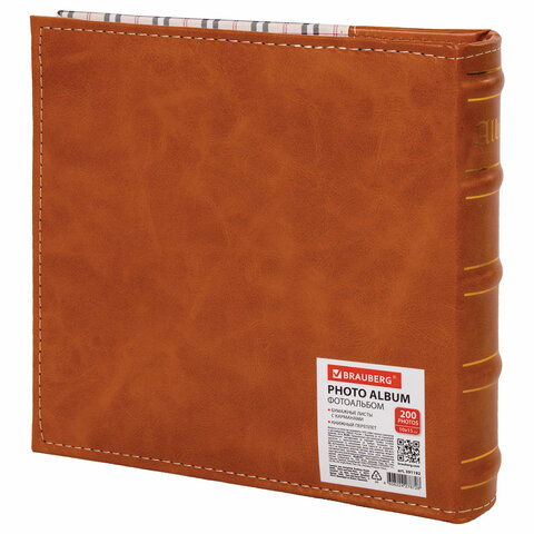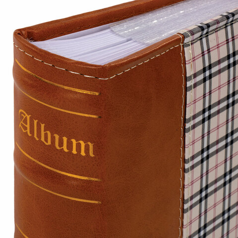 Фотоальбом BRAUBERG "Шотландка" на 200 фото 10х15 см, под кожу, бумажные страницы, бокс, 391192