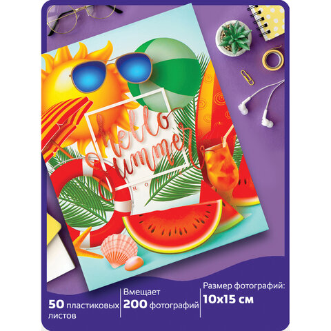 Фотоальбом BRAUBERG "Здравствуй, лето" на 200 фото 10х15 см, твердая обложка, термосварка, 391170