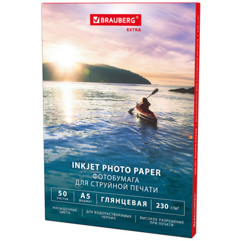 Фотобумага глянцевая, А5, 230 г/м2, односторонняя, 50 листов, BRAUBERG EXTRA, 364476
