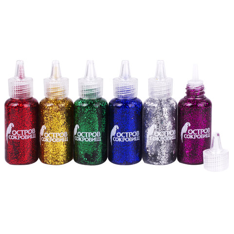 Гель с блёстками ОСТРОВ СОКРОВИЩ - это блестящие наборы для творчества и декорирования поделок из бумаги, картона, дерева, пластика и других материалов. Удобный наконечник с дозатором позволяет легко наносить гель на любую поверхность.