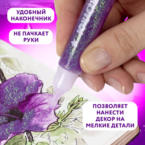 Гель с блёстками ЮНЛАНДИЯ "НЕОНЧИКИ" - это блестящие наборы для творчества и украшения открыток, поделок, рисунков и подарков. Удобный наконечник с дозатором позволяет легко наносить гель на любую поверхность.
