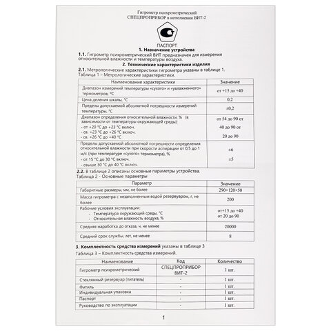 Гигрометр психрометрический ВИТ-2, с поверкой РФ, диапазон: от +15 до +40 °С