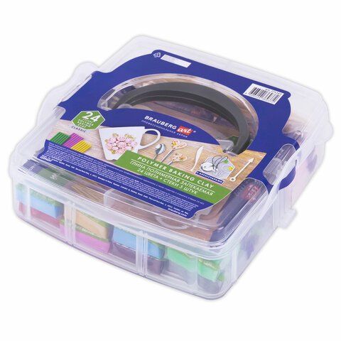 Глина полимерная запекаемая, НАБОР 24 цвета по 20 г, с аксессуарами в кейсе, BRAUBERG ART, 271163