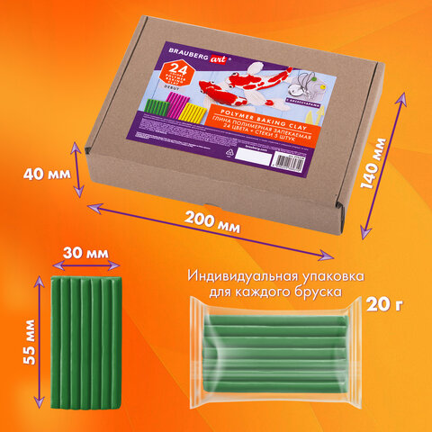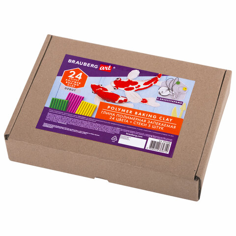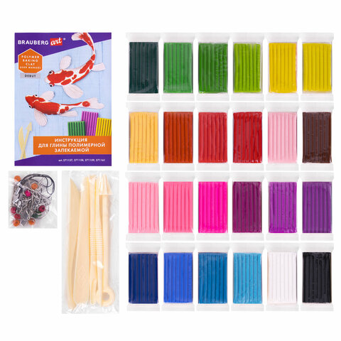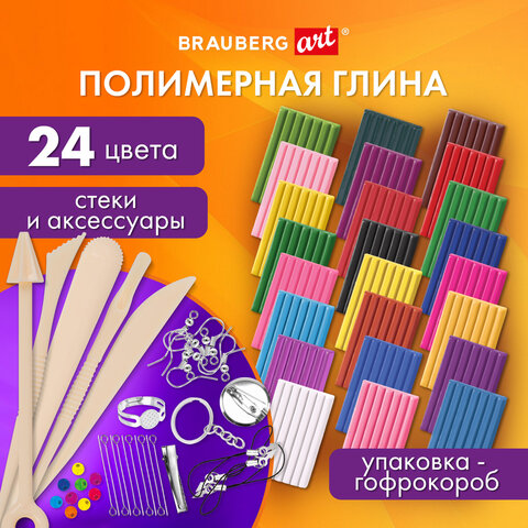 Глина полимерная запекаемая, НАБОР 24 цветов по 20 г, с аксессуарами, в гофрокоробе, BRAUBERG, 271158
