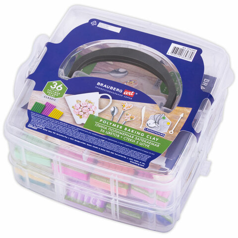 Глина полимерная запекаемая, НАБОР 36 цветов по 20 г, с аксессуарами в кейсе, BRAUBERG ART, 271164