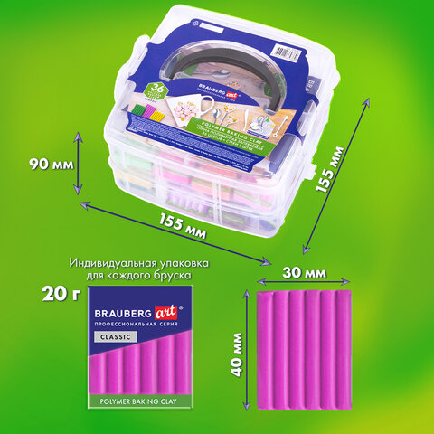 Глина полимерная запекаемая BRAUBERG ART CLASSIC - профессиональная серия. Предназначена для лепки и моделирования, создания игрушек, украшений, предметов интерьера, сувениров.