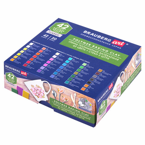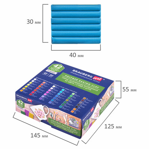 Глина полимерная запекаемая, НАБОР 42 цвета по 20 г, аксессуары, подарочная коробка, BRAUBERG ART, 271165