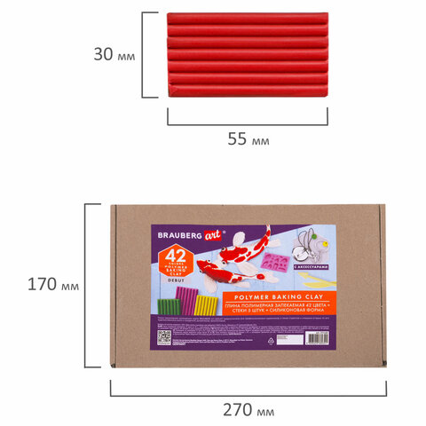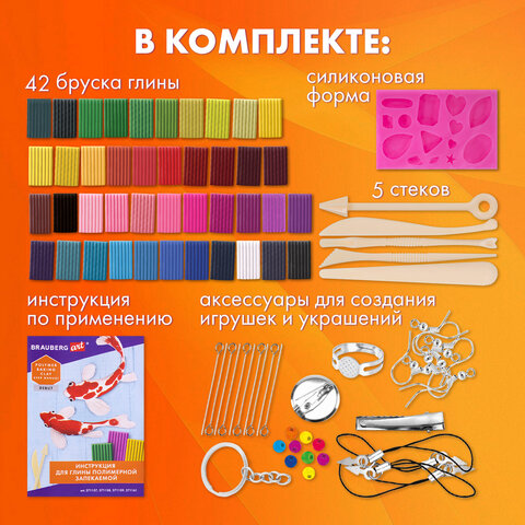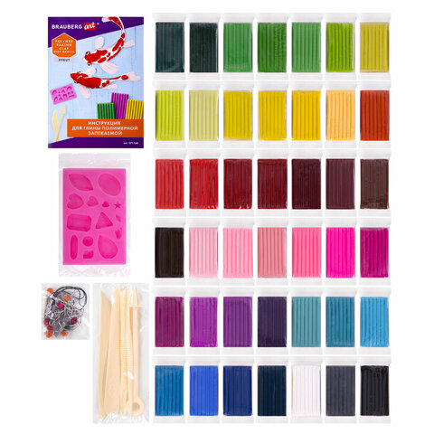Глина полимерная запекаемая, НАБОР 42 цвета по 20 г, с аксессуарами, в гофрокоробе, BRAUBERG, 271160