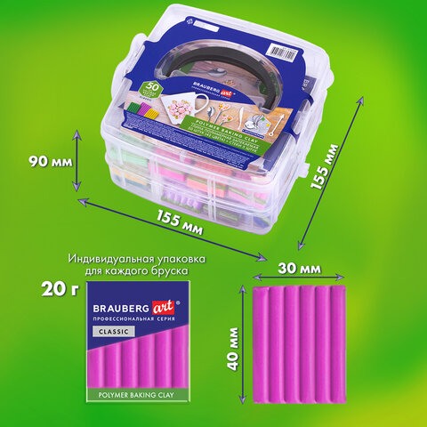 Глина полимерная запекаемая BRAUBERG ART CLASSIC - профессиональная серия. Предназначена для лепки и моделирования, создания игрушек, украшений, предметов интерьера, сувениров.
