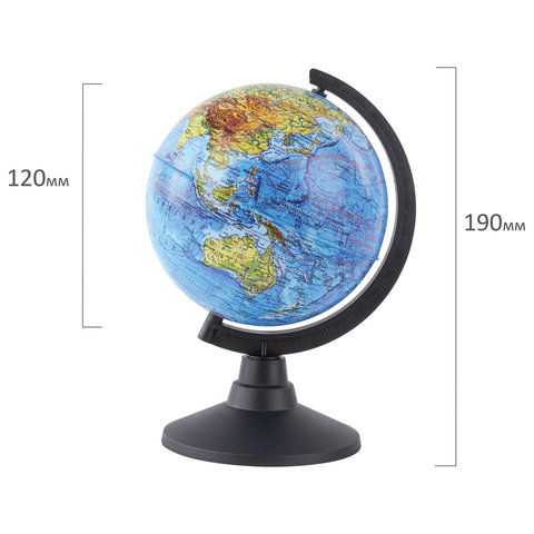 Глобус позволит ознакомиться с физической картой мира. Подходит для использования в детских садах и школах. Поможет узнать рельеф земной поверхности, абсолютные глубины океанов, найти самые высокие и самые глубокие места планеты.
