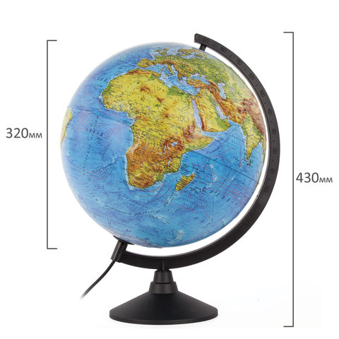 Глобус позволит ознакомиться с физической и политической картой мира. Подходит для использования в детских садах и школах. Поможет узнать об организационно-правовом (политическом) укладе территорий и рельефе земной поверхности.