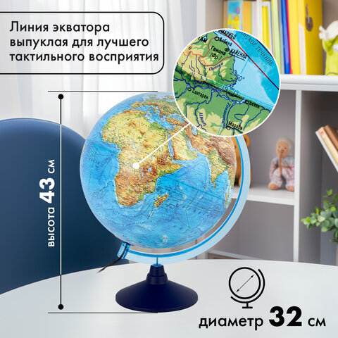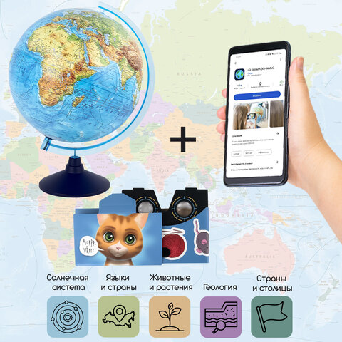 Глобус интерактивный + очки VR, физический / политический, GLOBEN, 32 см, рельефный, с подсветкой, INT13200290