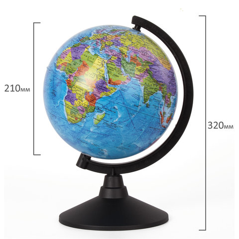 Глобус позволит ознакомиться с политической картой мира. Подходит для использования в детских садах и школах. Поможет узнать об организационно-правовом (политическом) укладе территорий, показывает сухопутные и морские границы государств и их столицы.