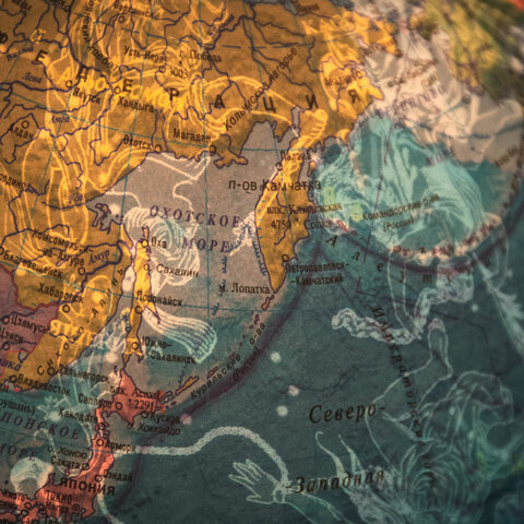 Вид глобуса политический / звёздное небо