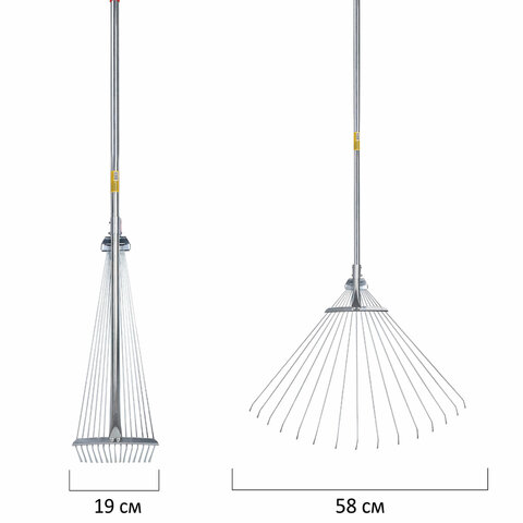 Грабли веерные проволочные раздвижные, 15 зубьев, ширина 15-58 см, черенок 115 см, ГРАНДМАСТЕР, 700348