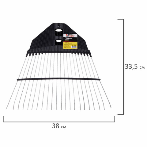 Грабли веерные проволочные, ширина 38 см, БЕЗ ЧЕРЕНКА, тулейка/черенок 25 мм, ГРАНДМАСТЕР, 700349