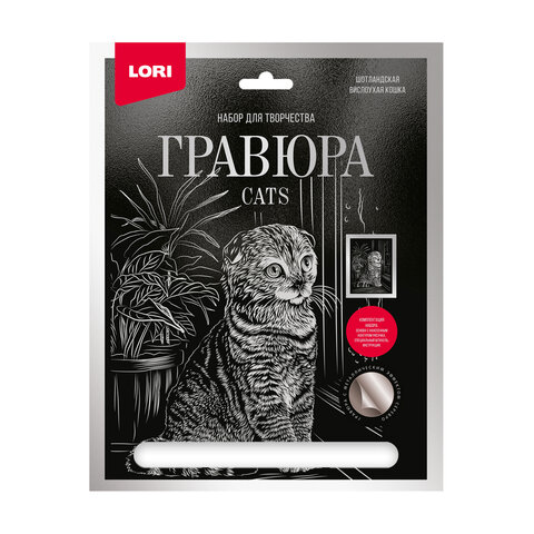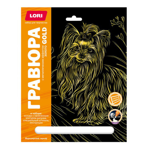Гравюра LORI с черным фоном и нанесенным на него контуром рисунка.