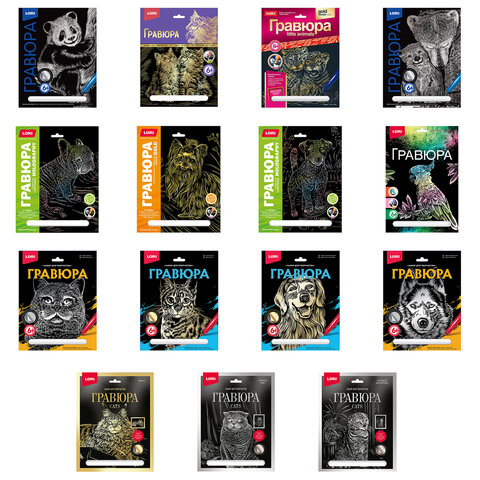 Гравюра АССОРТИ, 18х24 см, основа серебро/золото, штихель, LORI