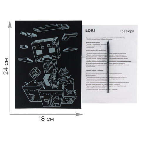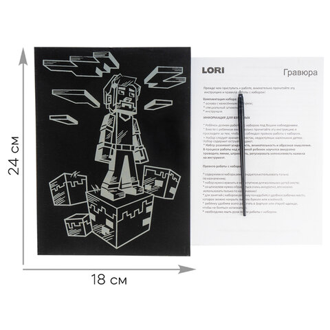 Гравюра LORI (ассорти) представляет собой многослойное панно, покрытое чёрной краской, на которое нанесён контур рисунка.