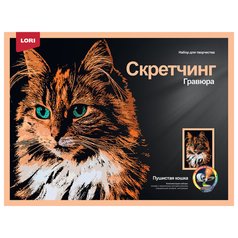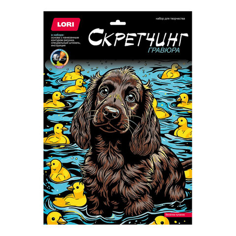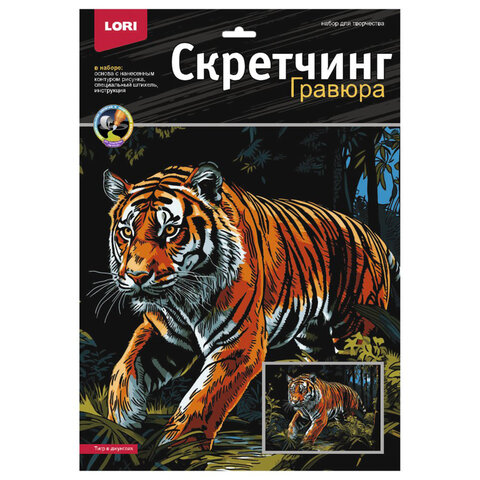 Гравюра в технике Скретчинг "Животные" АССОРТИ, цветная основа 30х40 см, штихель, LORI, 001