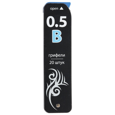 Грифели запасные 0,5 мм, B, BRAUBERG, КОМПЛЕКТ 20 шт., "Black Jack", 180449