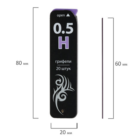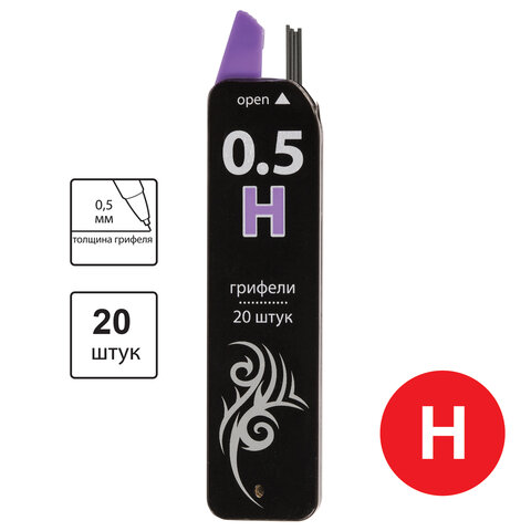 Грифели запасные 0,5 мм, H, BRAUBERG, КОМПЛЕКТ 20 шт., "Black Jack", 180450