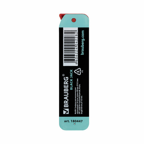 Грифели запасные 0,5 мм, HB, BRAUBERG, КОМПЛЕКТ 20 шт., "Black Jack", 180447