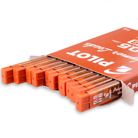 Грифели запасные 0,5 мм, HB, PILOT, КОМПЛЕКТ 12 штук, Polymer Leads, PPL-5