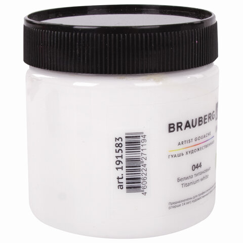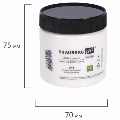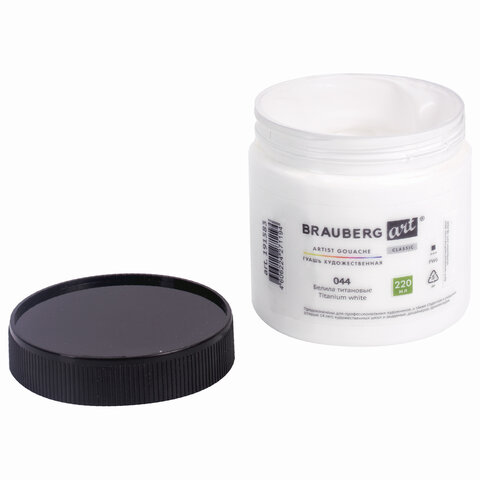 Гуашь художественная 1 шт., BRAUBERG ART CLASSIC, баночка 220 мл, БЕЛИЛА ТИТАНОВЫЕ, 191583
