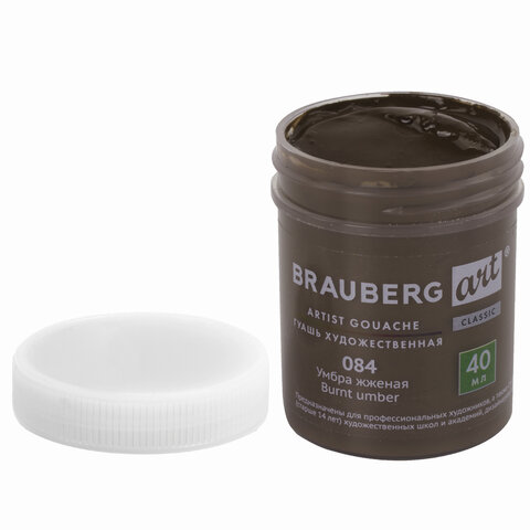 Гуашь художественная 1 шт., BRAUBERG ART CLASSIC, баночка 40 мл, УМБРА ЖЖЕНАЯ, 191577