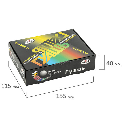 Гуашь художественная ГАММА "Модерн", 12 цветов по 20 мл, картонная упаковка, 221026