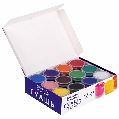 Гуашь BRAUBERG "АКАДЕМИЯ КЛАССИЧЕСКАЯ ЭКСТРА", 12 цветов по 20 мл, 192366