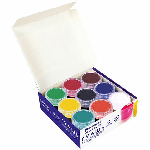 Гуашь BRAUBERG "АКАДЕМИЯ КЛАССИЧЕСКАЯ ЭКСТРА", 9 цветов по 20 мл, 192372