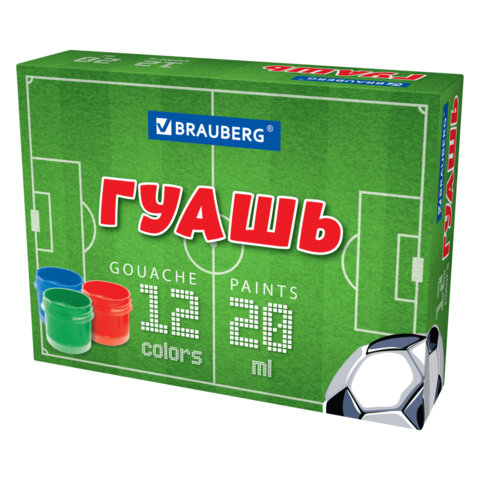 Гуашь BRAUBERG "Футбол", 12 цветов по 20 мл, 192566